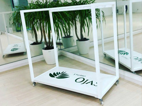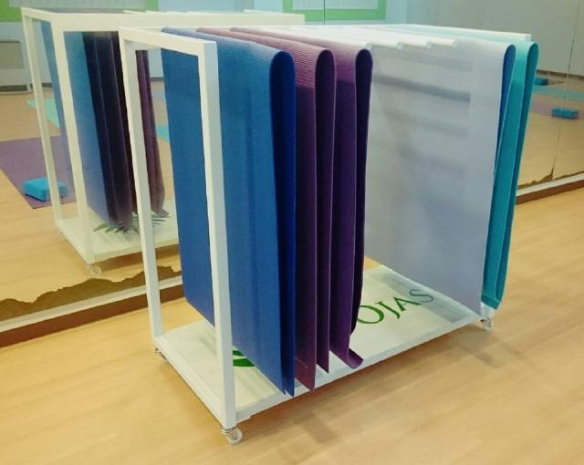 見た目と実用を兼ねたお店のオリジナルヨガマットスタンド